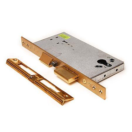 Врезной, универсальный, электроуправляемые ригель и защелка, расстояние от центра цилиндра до лицевой планки 60 мм, матовая латунь, в комплекте ответная планка, крепеж; габаритные размеры врезной части 183х89х18 мм, лицевая планка 264х22х3 мм