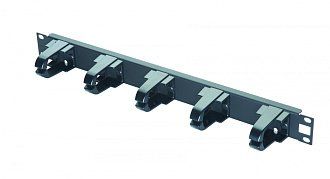 Кабельный органайзер горизонтальный 19", 1U, 5 пластиковых колец, металлический, цвет черный.