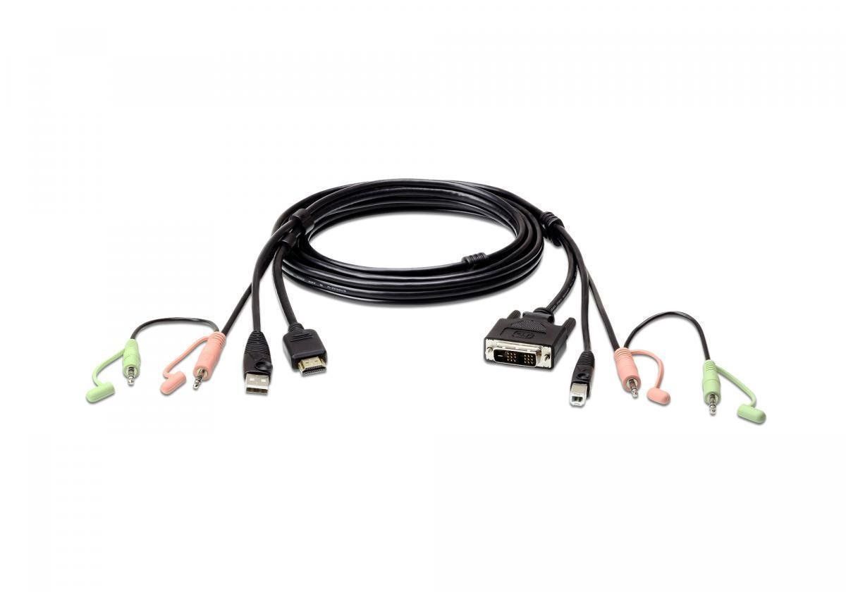 Кабель/шнур, мон+клав+мышь USB+аудио, DVI-D Single Link+USB B-Тип+2xRCA=>HDMI+USB A-Тип+2xRCA, Male-Male, опрессованный, 1.8 метр, черный.