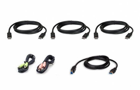 Комплект шнуров, мон+клав+мышь USB+аудио, 3xDP+USB A-Тип/B-тип+2xMINIJACK, Male, опрессованный, 1.8 м, черный.