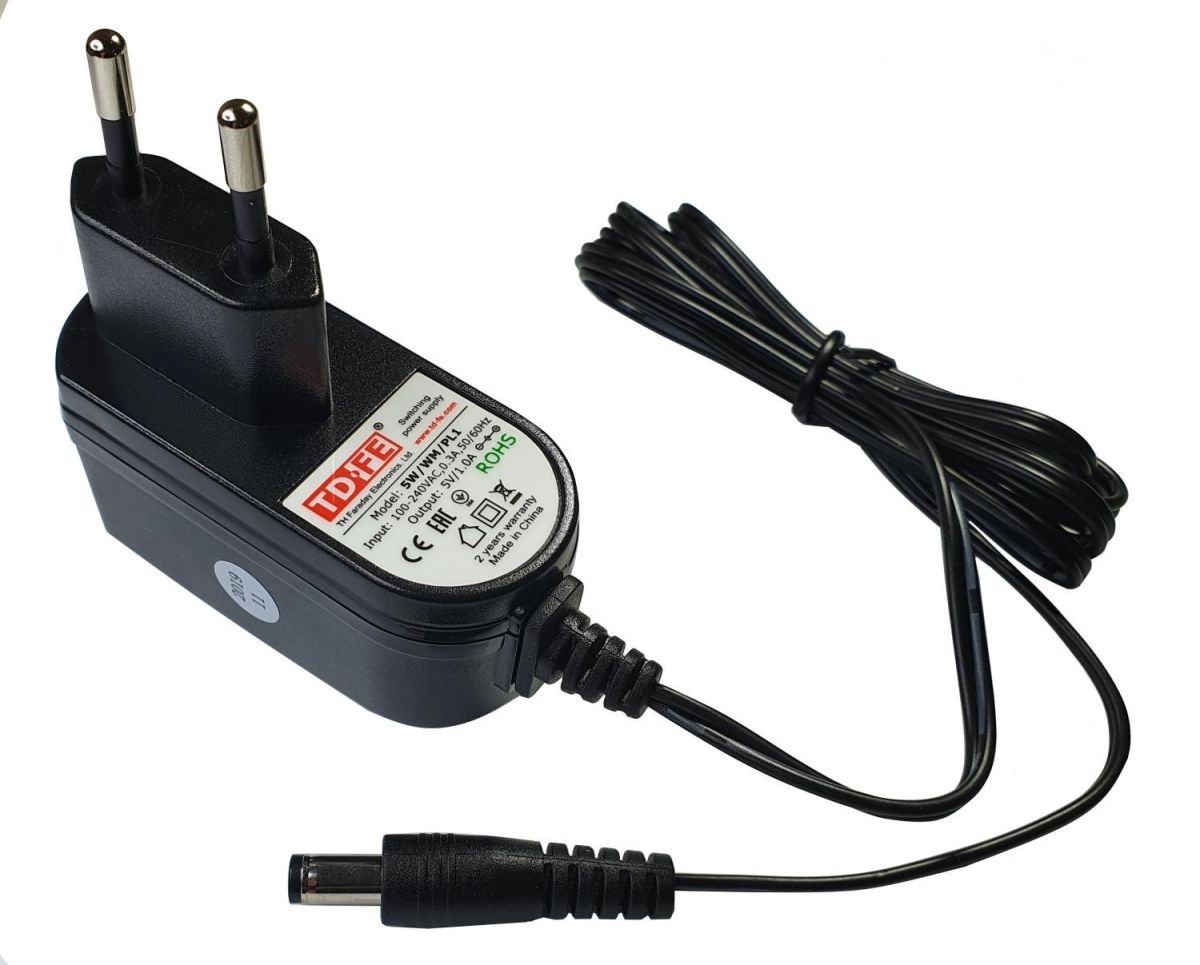 Блок питания 220 АС/5 DC; 1 А (5 Вт); 0…+60°C; 24х59х78 мм. Автоматическая защита от перегрузок. Кабель со штекером 5.5х2.1х10 мм длиной 1.2 м.