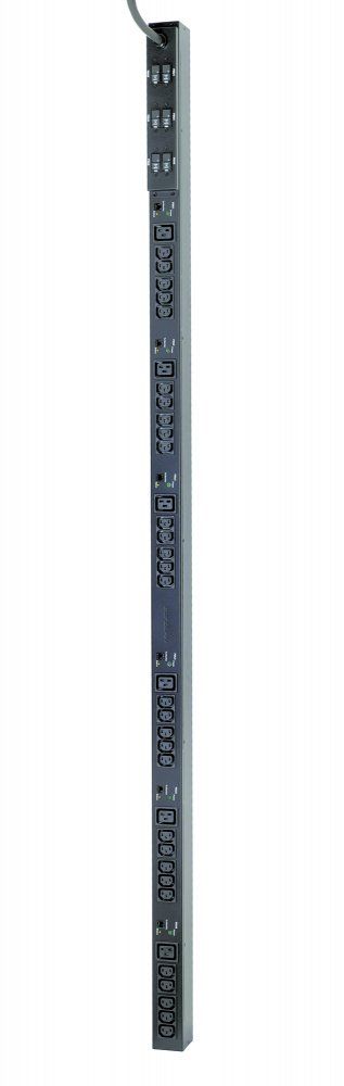 Блок розеток вертикальный, розетки C13х30 + розетки C19х6, входная розетка IEC 309 32 A 3P+N+PE, с выключателем 6 × 1P 16 A, шнур 3 м, 32А, металлический корпус, RJ-11x6, 56×1778×66 мм.