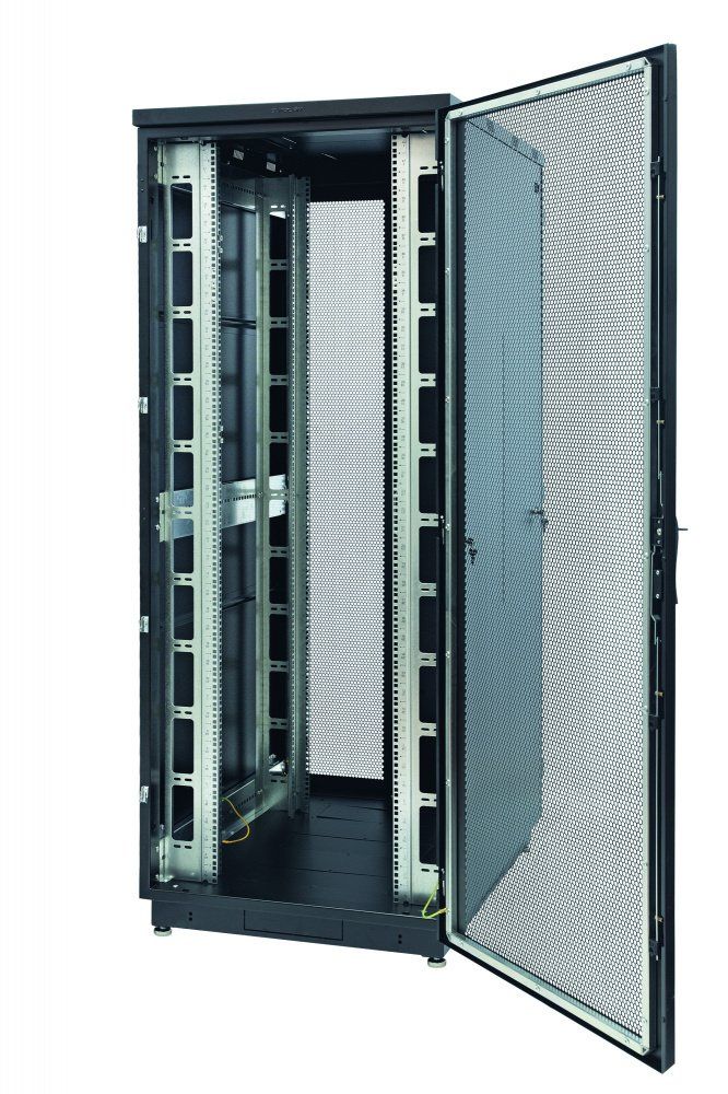 Шкаф телекоммуникационный 19", напольный 22U, дверь передняя перфорированная, дверь задняя двустворчатая перфорированная, полезная глубина 855 мм, распределенная нагрузка 550 кг, цвет черный, разобранный, 1145х800x1000 мм.