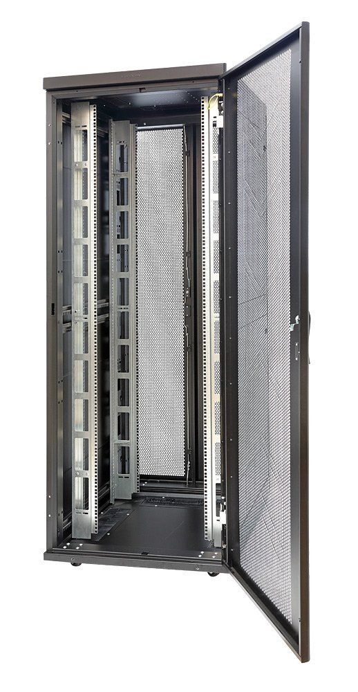 Шкаф телекоммуникационный 19" напольный 42U, 2030х800х800 мм (ВхШхГ), полезная глубина: 675 мм, распределенная нагрузка: 1300 кг,передняя дверь перф.1-ств., задняя дверь перф.2-ств., цвет черный.