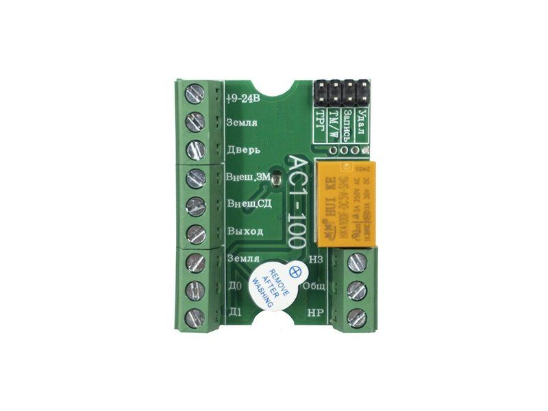 Контроллер Optimus AC1-100; 1000 пользователей; Wiegand 26, 34,42; коммутируемый ток замка-до 3.5 Ампер (DC 12В); длительность открытия двери-3...127 секунд (программируемая); индикация; зуммер; 9-24В DC, -40...+50°C; 48х32х16 мм.