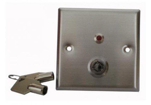 Переключатель с ключом и встроенной LED-индикацией, НО/НЗ контакты, тамперный контакт, пылевлагозащищенный корпус, LED 12В DC, ресурс 500 000 циклов, 3А/36В (DC) 86x86x20 мм.