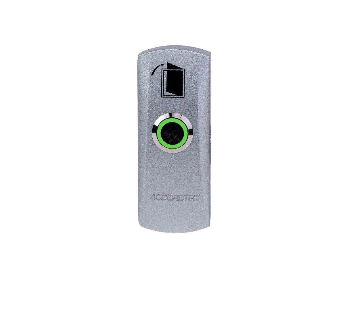 Кнопка выхода металлическая накладная c LED подсветкой, светодиод зеленый. Степень защиты: IP67. Выходные контакты НО/НЗ, 82х32х25 мм, цвет серебро; масса 128г.