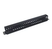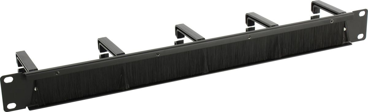 Кабельный органайзер с крышкой и щёточный ввод, 1U, металл, цвет чёрный.