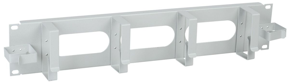 Кабельный органайзер горизонтальный металл 19", 2U, 2 боковых горизонтальных и 4 вертикальных кольца, 483х50х89 мм, порошковая окраска с фосфатированием, цвет серый.