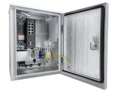 Коммутатор гигабитный 10 портовый уличный; 8xRJ-45 10/100/1000 Мбит/с; 2xSFP Uplink 10/100/1000 Мбит/с; термостат и обогреватель 30Вт; в комплекте оптический кросс: адаптер (розетка) SC/UPC SM 4 шт, КДЗС 4 шт, пигтейлы SM SC/UPC 4 шт, ложемент 1 шт; AC 230В, 60Вт; IP66; -60...+50°C, 300х400х220мм.