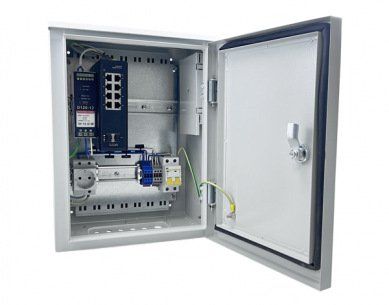 Коммутатор гигабитный 10 портовый уличный; 8xRJ-45 10/100/1000 Мбит/с; 2xSFP Uplink 10/100/1000 Мбит/с; в комплекте оптический кросс: адаптер (розетка) SC/UPC SM 4 шт, КДЗС 4 шт, пигтейлы SM SC/UPC 4 шт, ложемент 1 шт; AC 230В, 20Вт; IP66; -40...+50°C, 300х400х220мм.