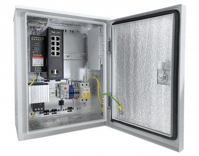 Коммутатор гигабитный 10 портовый уличный с PoE; 8хRJ-45 PоE 10/100/1000 Мбит/с, IEEE 802.3af/at до 30 Вт на порт, бюджет PoE 240Вт; 2хSFP Uplink 10/100/1000 Мбит/с; термостат и обогреватель 30Вт; в комплекте оптический кросс: адаптер (розетка) SC/UPC SM 4 шт, КДЗС 4 шт, пигтейлы SM SC/UPC 4 шт, ложемент 1 шт; AC 230В, 270Вт; IP66; -60...+50°C, 300х400х220мм.