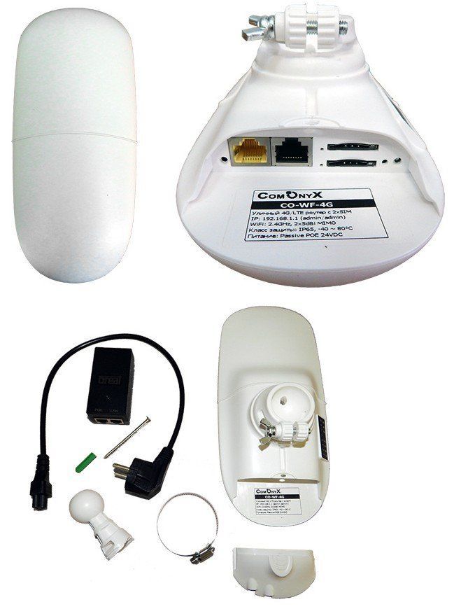 4G/LTE Роутер предназначен для передачи интернета от 4G сетей МТС/Билайн/Мегафон IP-устройствам по Wi-Fi и LAN-сети. Роутер оснащен двумя WiFi-антеннами по 5дБ и двумя 4G-антеннами по 5дБ. Роутер может работать одновременно с двумя SIM-картами для более надежного интернет-соединения. Также роутер поддерживает проводное интернет-соединение по порту WAN c последующей передачей интернета как по Wi-Fi, так и по порту LAN. Исполнение в пластиковом уличном корпусе классом IP65. Блок питания passive PoE 24В/0,5А и кронштейн для установки на столб или стену в комплекте.
