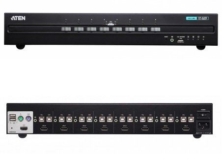 Переключатель KVM защищенный, KVM+Audio+USB 2.0, 1 консоль PS2/USB+HDMI => 8 cpu USB+DP, без шнуров, 3840x2160 30Гц, настол., исп.стандарт.шнуры, без OSD, некаскад., АС 100-240 В, 1А, 0…+50°C, 432х204х65 мм.