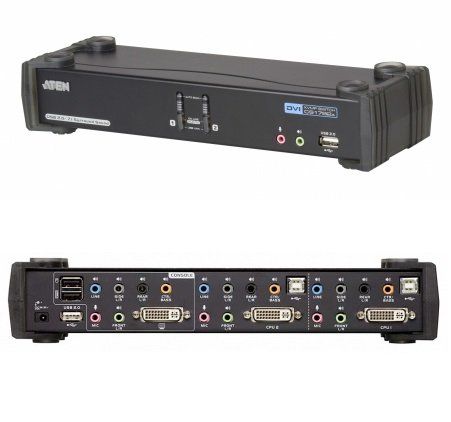 Переключатель Switch, DVI+KBD+MOUSE, 1> 2 блока/порта/port USB, c KVM-шнурами USB 2х1.8 м., (2560x1600 60Гц DVI-D Dual Link/2048x1536 DVI-A; монитор DVI; консоль упр. - USB; + 2 порт. HUB USB 2.0; SV231DVIUAHR; TK-222DVK), БП в комплекте, DC 5.3В, 9Вт, 0…+50°C, 270х88х55 мм.