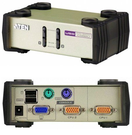 Переключатель Switch, VGA/SVGA+KBD+MOUSE, 1> 2 блока/порта/port PS2/USB, с KVM-шнурами PS2/USB 2х1.8м, KVM=монитор+клав.+мышь; CAS-231; DKVM-2; TK-200K; KMH2C; LKV-S02SK; EK-PSK2, DC 5В, 1.1 Вт, 0…+50°C, 140х88х56 мм.