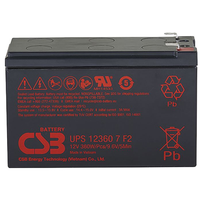 Аккумуляторные батареи UPS производителя CSB – это мощные и долговечные устройства, которые имеют срок службы до 5 лет при цикличном режиме работы. Это 260 циклов при полной разрядке. Батареи соответствуют стандартам качества, имеют сертификаты и собраны по новейшей технологии AGM – герметизированы и не требуют обслуживания. Аккумуляторы с небольшим весом и компактными размерами имеют низкий саморазряд, отличаются высокой надежностью, безопасностью и стабильностью работы. Широко применяются в качестве источника дополнительного питания в электроинструменте, для промышленных приборов, ИБП, различных системах сигнализаций и охраны.