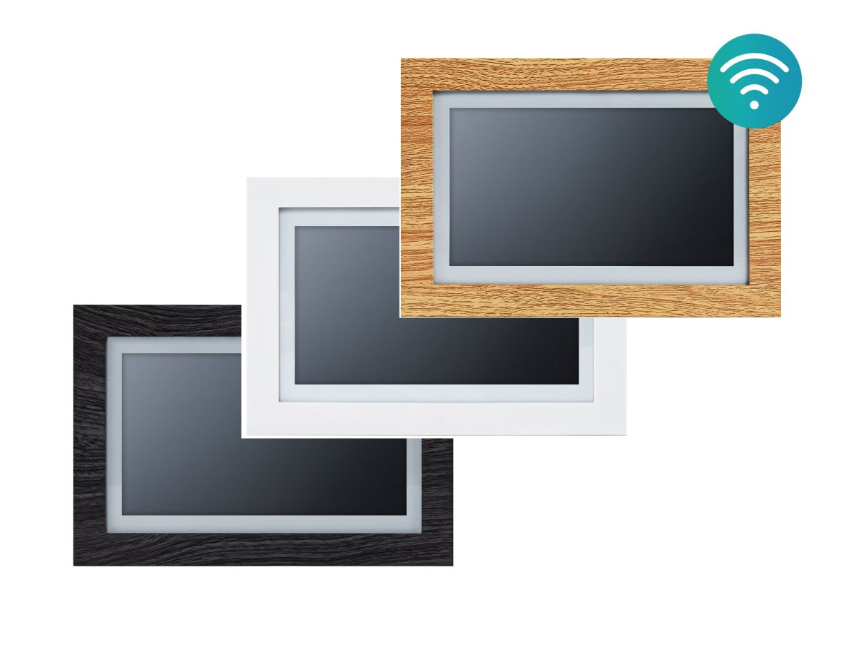 • 3 сменные декоративные рамки в комплекте: Золотистый дуб, Серый ясень, Белый матовый.