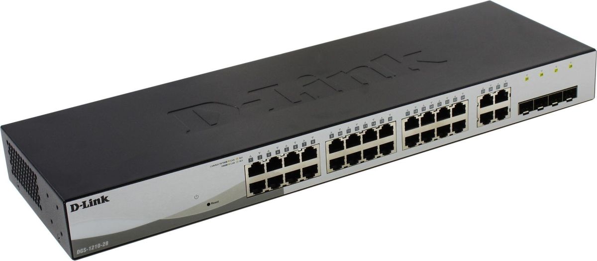 Коммутатор сетевой 28 портовый гигабитный L2 управляемый; 24xRJ-45 10/100/1000 Мбит/с; 4xCombo SFP/RJ-45 Uplink 10/100/1000 Мбит/с; AC 100-240В, 18 Вт; -5... +50°C; монтаж в 19" стойку; 440х140х44 мм.