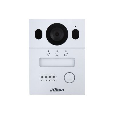 Вызывная панель 2-проводная, с разрешением камеры 2мп и CMOS сенсором, угол обзора по горизонтали 110°, панель из алюминия, уровень защиты IP65, IK07. Поддержка режима "Ночь" и голосового оповещения. Групповые вызовы. Видео и аудио сообщения. Удаленный доступ через мобильное приложение DMSS. Питание: через 2-проводной контроллер; Выход питания: 12В, 200мА