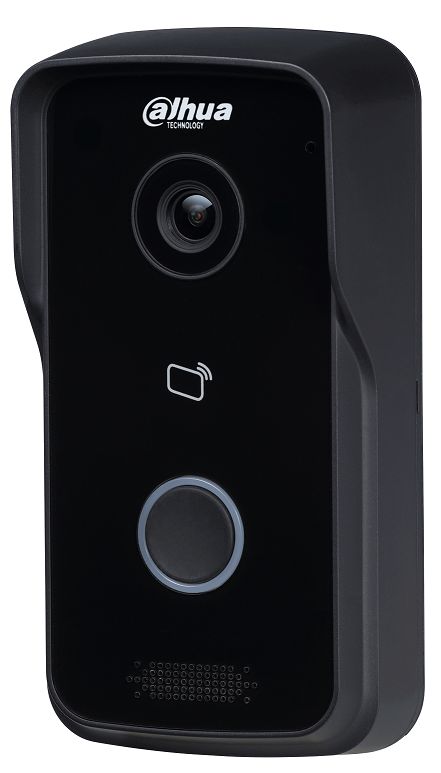 Вызывная панель с разрешением камеры 2 МП и CMOS сенсором, WDR, угол обзора 107 градусов, черная, IP65. Поддержка режима "Ночь" и голосового оповещения. Встроенный считыватель карт mifare, до 10 000 карт. Групповые вызовы. Видео и аудио сообщения. Удаленный доступ через мобильное приложение DMSS. Питание: 1А, DC 12 В/PoE.