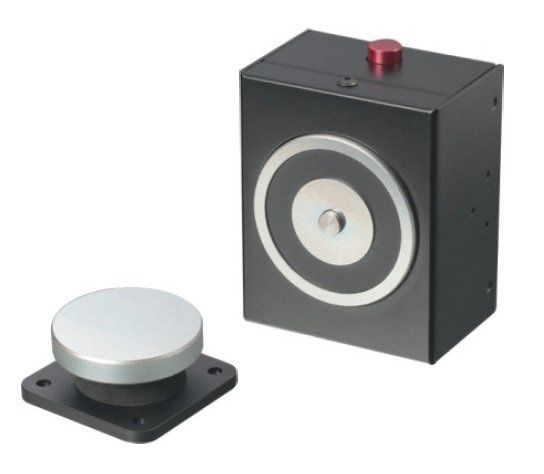 Электромагнитный удерживающий замок, сила удержания 65 кг, кнопка отключения питания, датчик состояния, режим энергосбережения, 12/24 В, 96/49 мА, -20...+70 °С, габариты: удерживатель 76х61х44,7 мм, ответная часть 65х65х57 мм