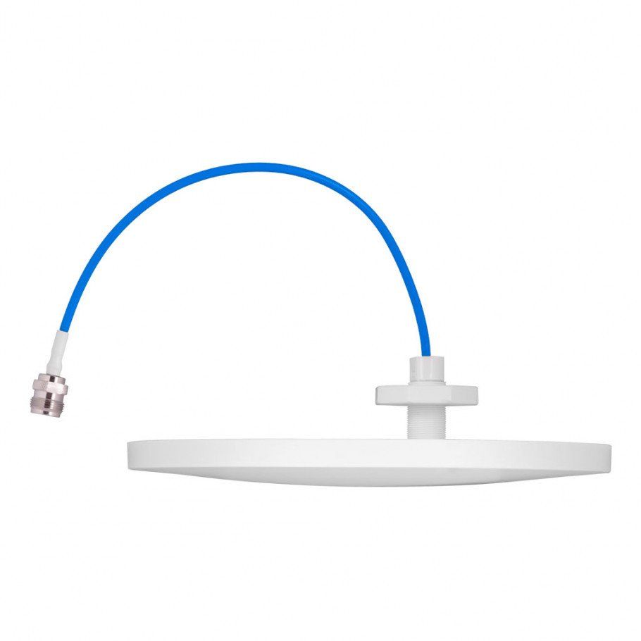 Широкополосная внутренняя потолочная круговая антенна, универсальна для монтажа с любыми усилителями сотовой связи, диапазон частот 698-960…1710-2700 МГц, коэффициент усиления до 3.5-6 дБ, стандарт сотовой связи 2G GSM900, 2G GSM1800, 3G UMTS900, 3G UMTS2100, 4G LTE800, 4G LTE1800, 4G LTE2100, 4G LTE2600, Wi-Fi, разъем антенны N-типа (розетка), волновое сопротивление 50 Ом, -40...+60°C, 220х20 мм.