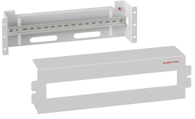 Для соблюдения электробезопасности DIN рейка находится внутри 19 дюймового корпуса высотой 3U.