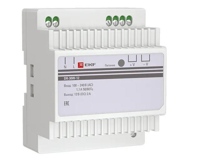 Источник вторичного питания стабилизированный, U-вх.100…240 В, U-вых.10.8…13.2 В (регулируется), I-макс.2 А, защита от КЗ, перегрева и перегрузки, световая индикация режимов работы, две группы выходных контактов, IP20, 78х56х93 мм. Пластиковый корпус с креплением на DIN-рейку.