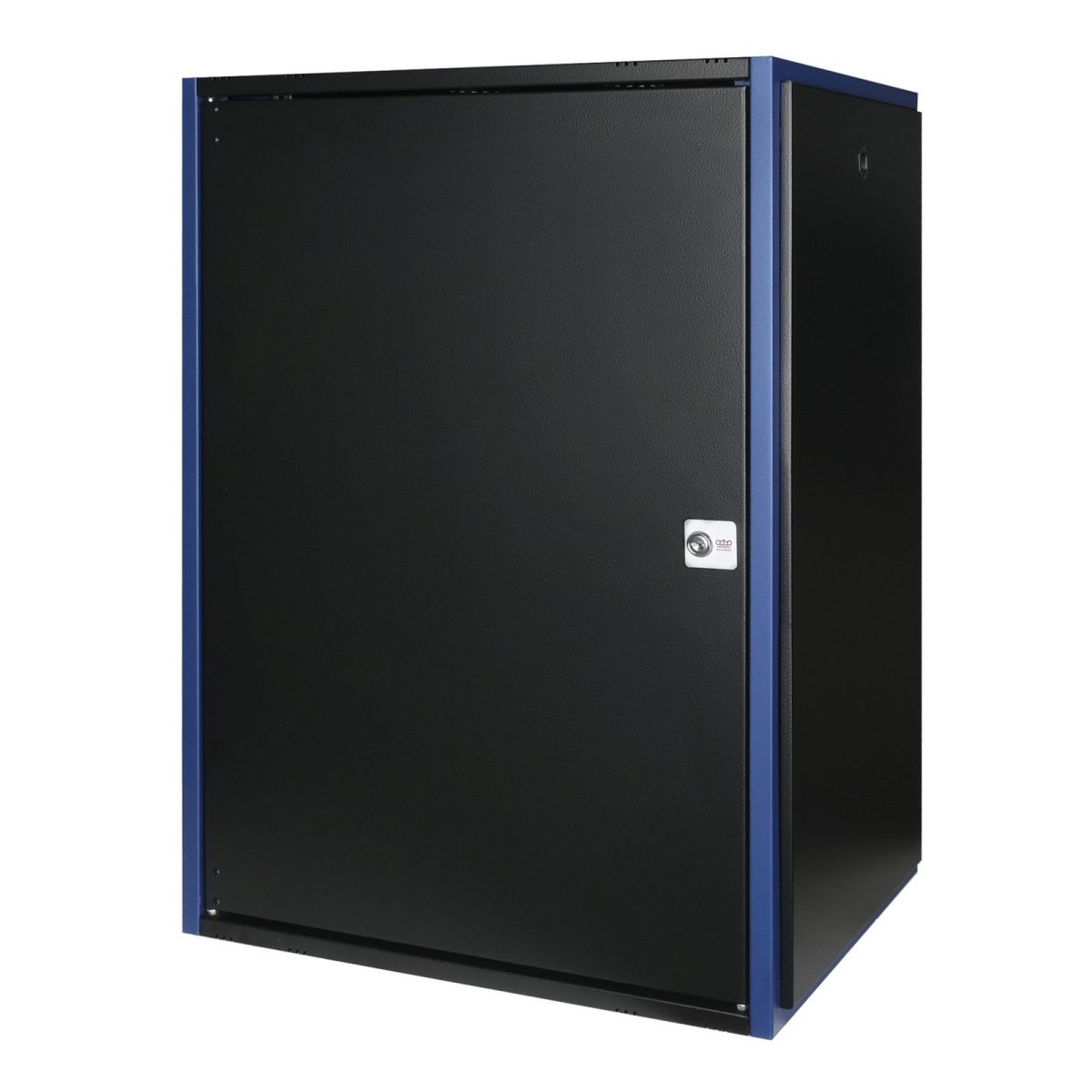 Шкаф телекоммуникационный 19" настенный, 15U, передняя дверь цельнометаллическая, задняя стенка сплошная цельнометаллическая, 728х600х600 мм (ВхШхГ), полезная глубина 584мм, распределенная нагрузка: 50 кг, в комплект поставки входит: комплект крепежа для сборки; щеточный кабельный ввод, черный RAL 9005, IP20.