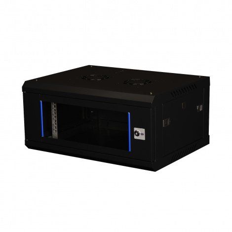 Шкаф телекоммуникационный 19" настенный, 4U, дверь со стеклом, задняя стенка цельнометаллическая, полезная глубина 410 мм, распределенная нагрузка до 100 кг, разобранный, цвет черный, 280х600х450 мм.