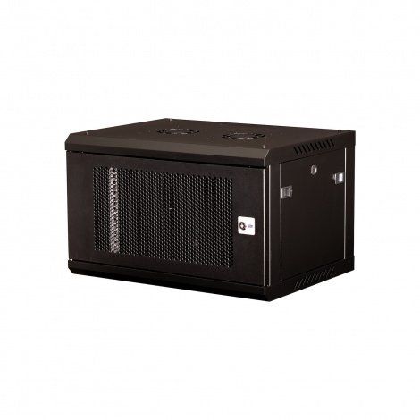 Шкаф телекоммуникационный 19" настенный, 6U, дверь перфорированная, задняя стенка цельнометаллическая, полезная глубина 410 мм, распределенная нагрузка до 100 кг, разобранный, цвет черный, 369х600х450 мм.