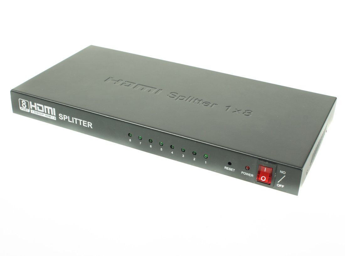 Разветвитель сигнала HDMI (1вх./8вых.). Максимальное разрешение 4K2K(30Гц). Поддержка 3D и HDCP. Скорость передачи данных до 10.2 Гбит/с. Вх.- HDMI(A)/Роз .2.1х5мм(DC5В). Вых.- HDMI(A)x8. В комплекте БП DC5В(2А). -5…+55°С, 277x26x140мм.