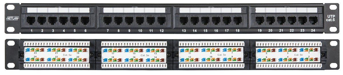 Патч-панель EC-URP-24-UE2 предназначена для монтажа в шкаф или стойку 19", и имеет 24 порта RJ45/8P8C категории 6. Патч-панель выполнена в классическом черном цвете имеет универсальные контакты 110/KRONE с цветовой маркировкой по стандарту T568A/B с тыльной стороны. Для удобства администрирования, все порты пронумерованы, а также на патч-панелях имеются дополнительные маркировочные площадки.