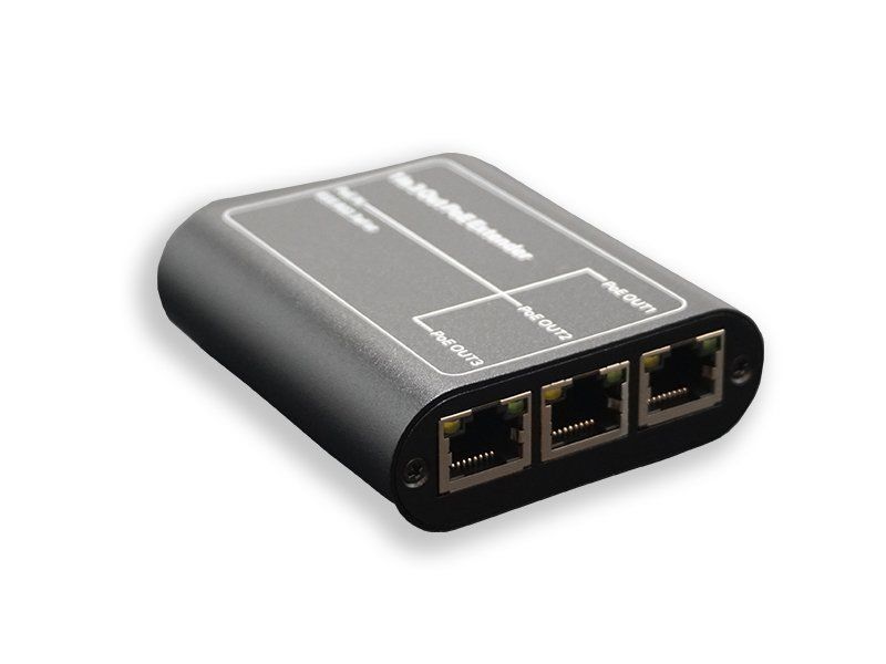 Удлинитель Fast Ethernet с передачей РоЕ+; расстояние 100м; вход 1xRJ-45 до 30В, IEEE 802.3af/at, выходы 3xRJ-45 до 30В, IEEE 802.3af/at; -45...+60, 79х70х24 мм.