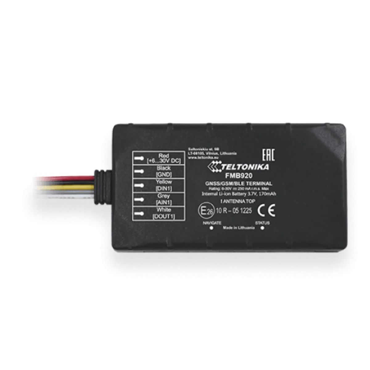 Teltonika FMB920 - это компактный интеллектуальный трекер с поддержкой Bluetooth, встроенными GNSS и GSM антеннами с высоким уровнем усиления и встроенным резервным аккумулятором. FMB920 предназначен для отслеживания легковых транспортных средств в таких сферах, как страховая телематика, аренда автомобилей, восстановление угнанных автомобилей, услуги общественной безопасности, транспорт служб доставки, такси и многого другого. Доступные входы/выходы расширяют сферы использования прибора. Цифровой вход можно использовать для контроля состояния зажигания, дверей или аварийной кнопки. Используя цифровой выход возможна дистанционная иммобилизация автомобиля.