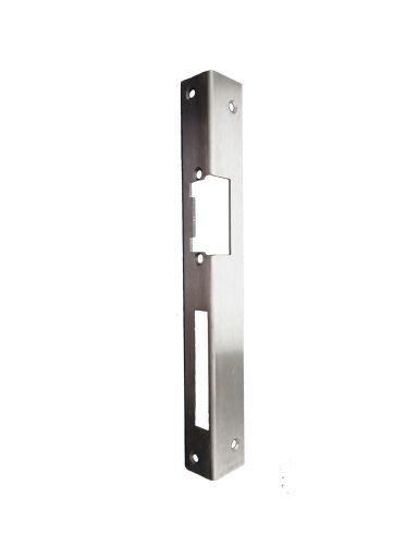 Угловая крепежная панель для электромеханической защелки, длинное исполнение 25х30x250x3 мм, прямые углы с 4 сторон, из нержавеющей стали.