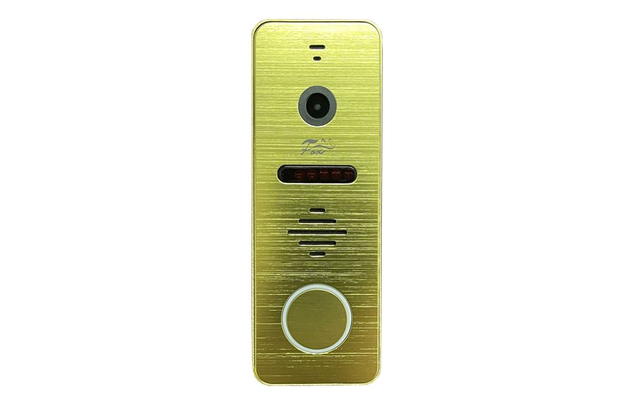 Вызывная видеопанель FX-CP23S, цвет -Золото; AHD 2Мп; 1/2.7" HD CMOS 1920x1080, Разрешение камеры: 1080P/720P/CVBS; ИК-подсветка: до 5-и метров; ИК фильтр; Объектив 2.7mm, Угол обзора 120°; Питание: DC 12V от монитора; Управление замком НО/НЗ; Крепление: накладное; Козырек и Уголок в комплекте; -40…+50°С, 130x40x23 мм.