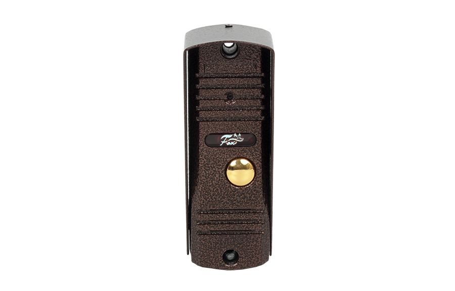 Вызывная видеопанель FX-CP7, цвет - медь, разрешение камеры: 700 ТВЛ; 1/4" HD CMOS; ИК-подсветка; Угол обзора 60°; Питание: DC 12V от монитора; Управление замком; Крепление: накладное; Козырек и Уголок в комплекте; -40°С…+50°С; 122x41x23мм.