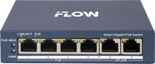 Коммутатор сетевой 6 портовый с РоЕ гигабитный; 4xRJ45 PoE 10/100/1000 Мбит/с, IEEE 802.3af/at, 2xRJ45 Uplink 10/100/1000 Мбит/с; PoE бюджет до 60 Вт; вариант работы РоЕ А 1/2 (-), 3/6 (+); PoE Watchdog, STP/RSTP, VLAN, управление через веб-интерфейс, дальность передачи до 300 метров; защита от перенапряжения до 6 кВ; DC 54 В, 1.2 A, 65Вт; 0... +40°C; 121х28х83 мм.