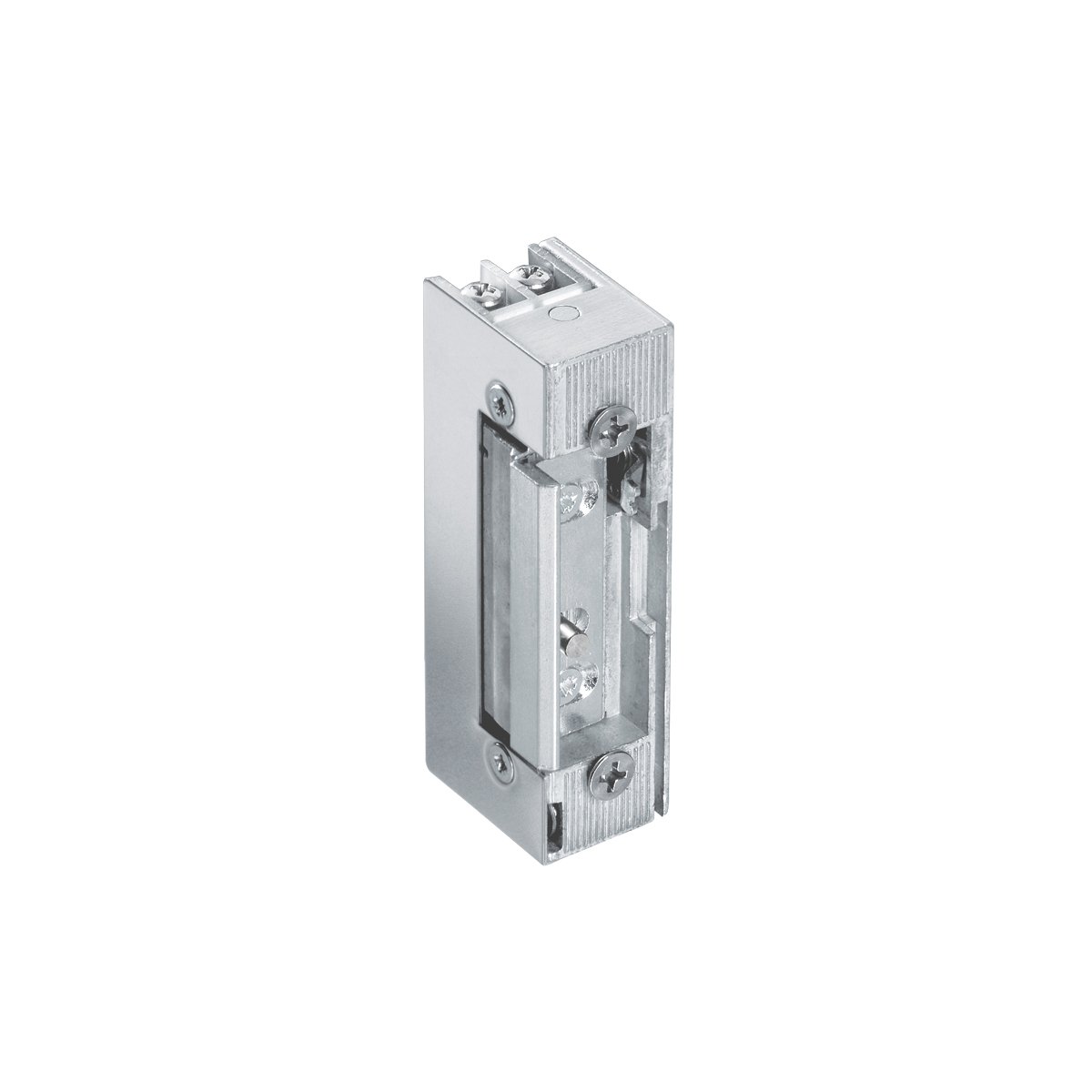 Электрозащелка для использования на противопожарных и дымозащитных дверях с регулируемым язычком для лево и правосторонних дверей с притвором и без. Функция открывания под нагрузкой. НЗ, 12-24 В DC, нагрузочный фактор 100%.