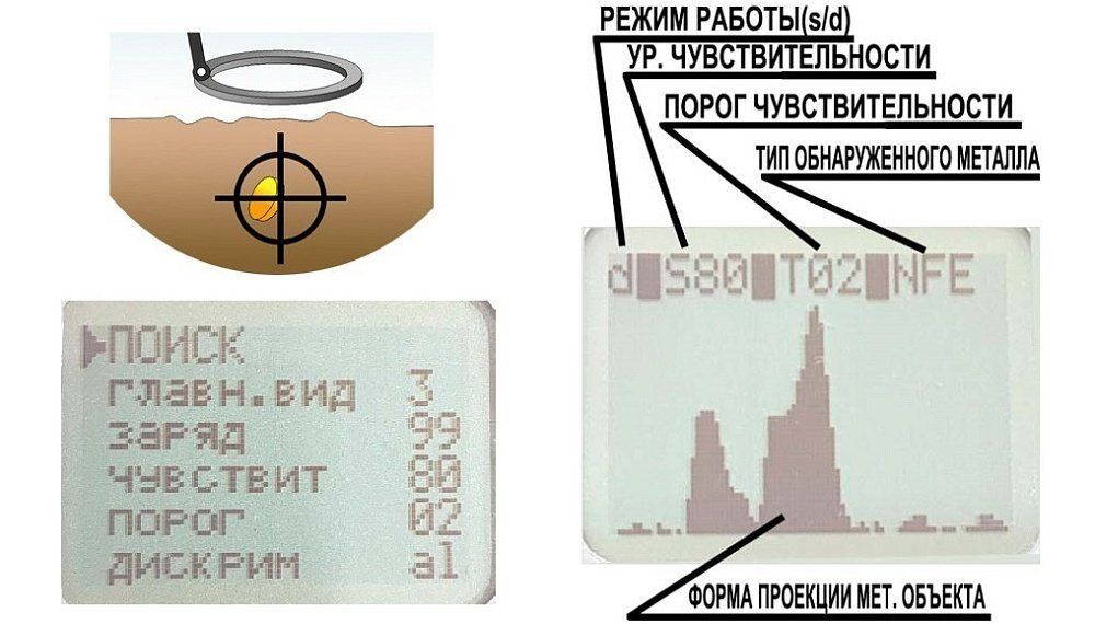 Дисплей имеет разрешение 48 на 48 точек. Встроенная подсветка экрана даёт возможность проводить поиск в пасмурную погоду и в плохо освещаемых местах (в полуразрушенных домах, оврагах и т. д.). Звуковая индикация полигональная и поддерживает свыше 16 тонов. Громкость имеет 10 уровней. Чувствительность прибора 99 уровней. Отстройка от посторонних помех и шумов автоматически обновляется.
