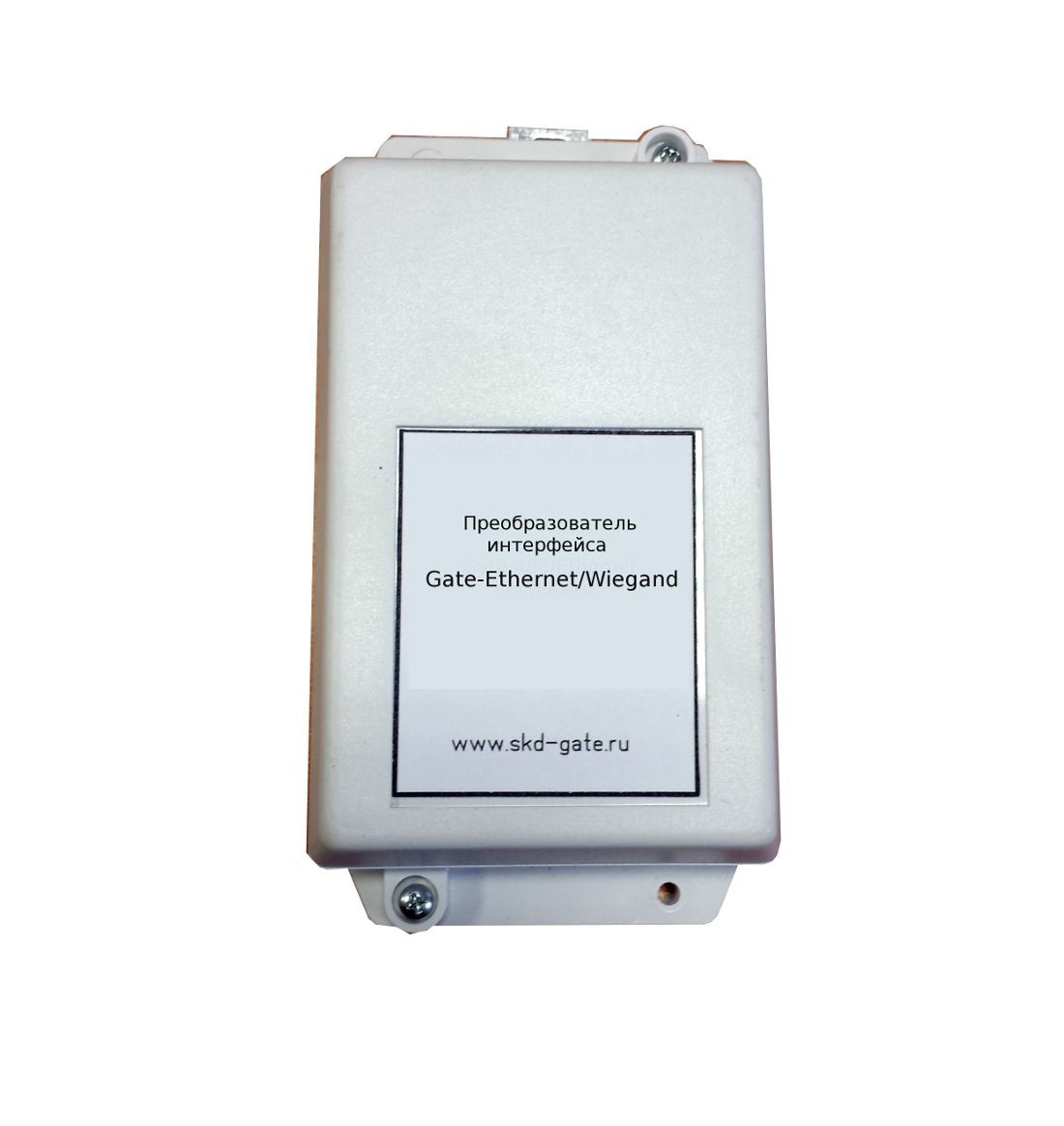 Специализированный преобразователь интерфейса Gate-Ethernet/Wiegand используется для подключения серверов распознавания (автономеров) к контроллеру СКУД по спецпротоколу. Преобразователь обеспечивает прием кодовой посылки по сети Ethernet от сервера распознавания, декодирование полученной посылки и выдачу кода идентификатора на требуемый Wiegand вход контроллера СКУД.