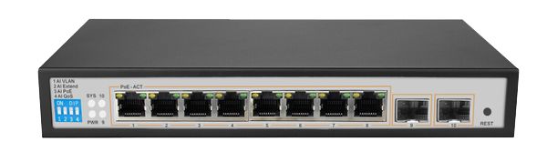 Коммутатор GIGALINK, WEB Smart управляемый, 8 PoE (802.3af/at) портов 10/100/1000Мбит/с до 250 метров cat.6, 2*SFP 1000Мбит/с, 96Вт APO&R