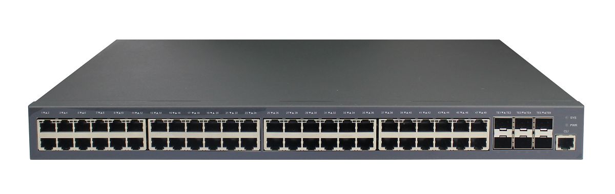 Коммутатор управляемый L3, гигабитный, 54 портовый с РоЕ; 48xRJ45 PoE 10/1000 Мбит/с, IEEE 802.3af/at(до 30Вт на порт), 1xRJ45 консольный, 6xSFP+ 10Гбит/с; PoE бюджет до 740 Вт; 1U, уголки для монтажа в стойку 19", кабель питания в комплекте; 220В, 50Гц, 2 блока питания (370Вт+370Вт), 0... +50°C; 440х350х44 мм.