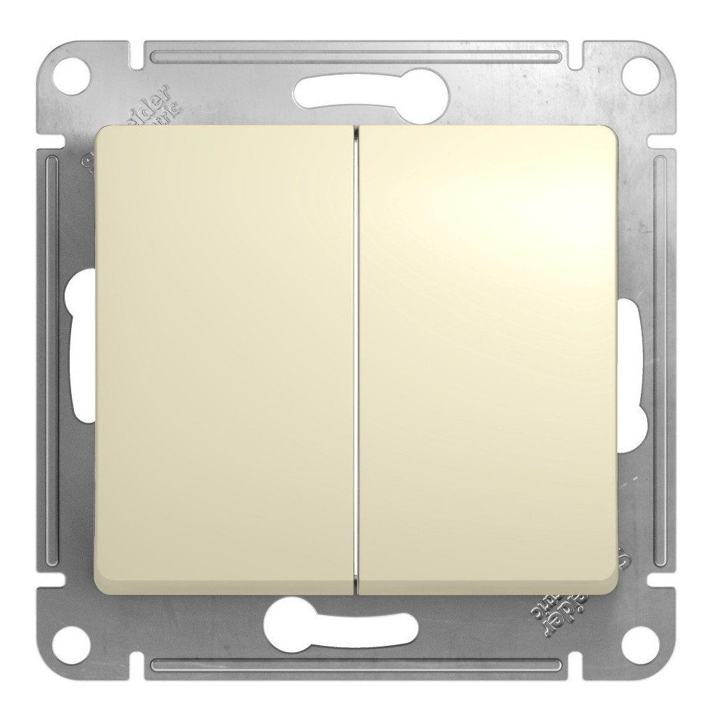 Выключатель 2-клавишный скрытой установки (сх. 5), серия Glossa, I-раб.10 А, U-раб. 250 В, IP20, цвет бежевый, ШхВхГ 70,8х70,8х38,5 мм