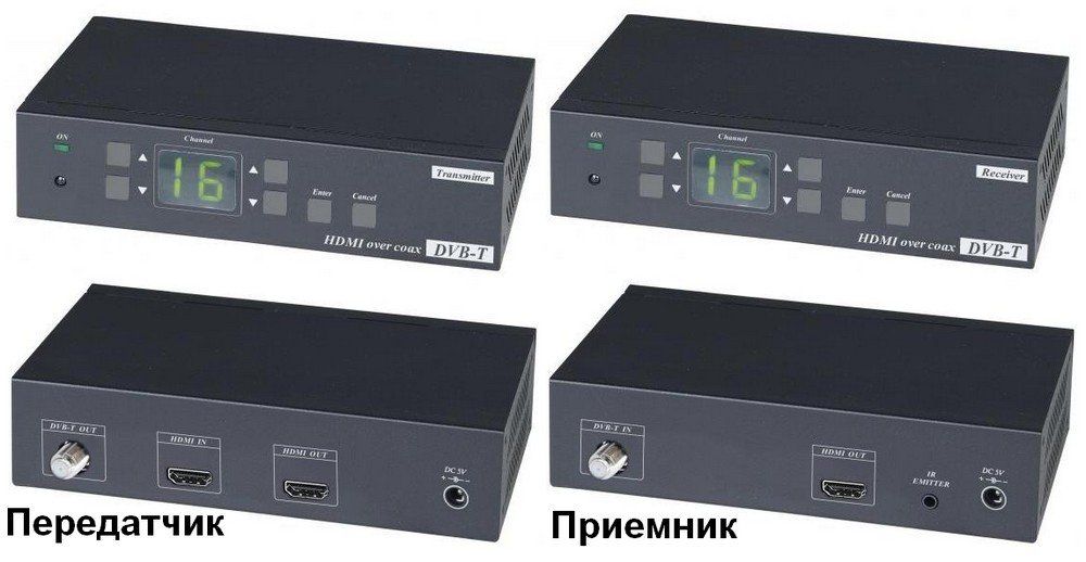 Комплект (передатчик HE05CT + приёмник HE05CR) для передачи HDMI сигнала по коаксиальному кабелю; Расстояние передачи до 500м с коаксиальным кабелем RG59/RG6(1080p/30Гц); Поддержка до 99 каналов с частотным диапазоном 142-950МГц; Режим работы точка-точка, мультиточка-мультиточка и точка-мультиточка для подключения до 99 приемников HE05CR; Передатчик вх./вых.- HDMI(A), DC5В, вых.- F-коннектор. Приёмник вх.- F-коннектор/DC5В/IR, вых.- HDMI(A); DC5В /750мА (БП 2 шт в комплекте); 0°...+70°C; 167x40x110,5мм