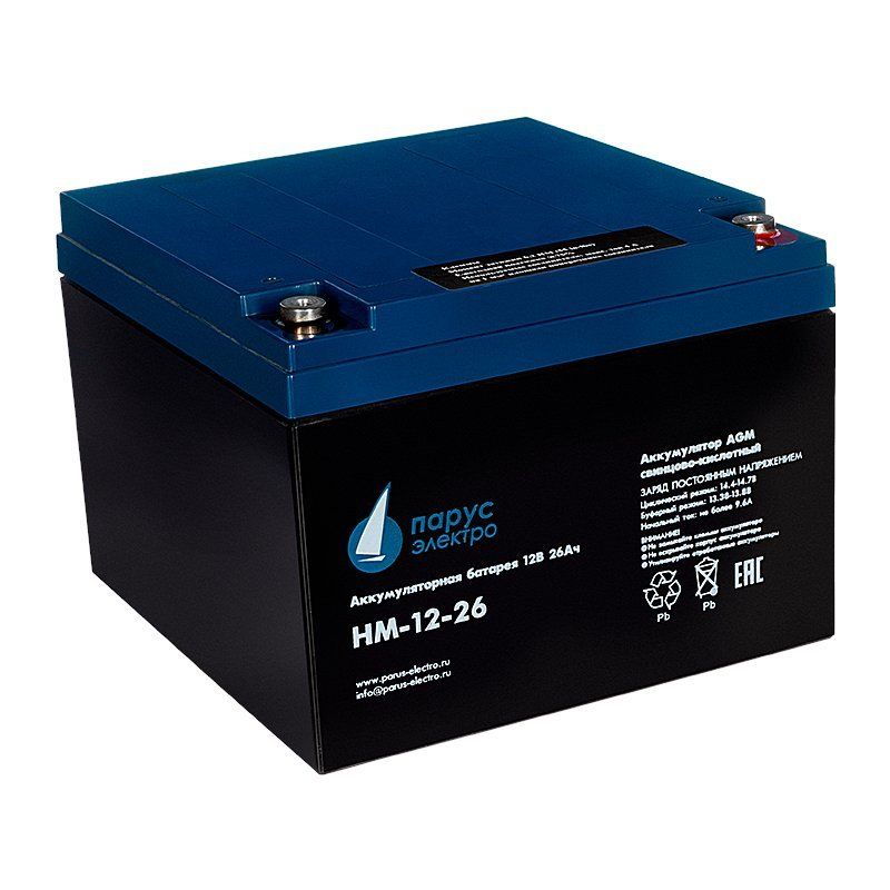 Свинцово-кислотный, герметичный аккумулятор, 12В/26Ач, M5 (клемма диаметром 12 мм под вертикальный болт), 166x175x125мм, 9.2 кг