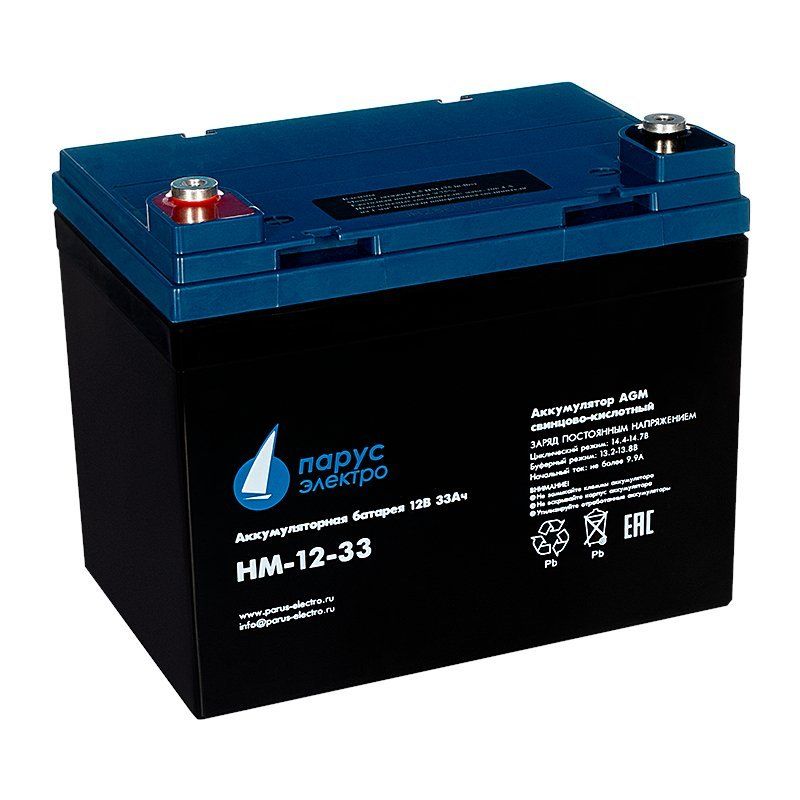Свинцово-кислотный, герметичный аккумулятор, 12В/33Ач, M6 (клемма диаметром 14 мм под вертикальный болт), 195x130x155мм, 10.1 кг