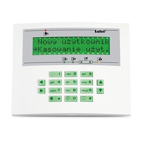 ЖКИ клавиатура для INTEGRA и CA-64, 2 строки по 16 символов, зеленая подсветка, считывание памяти событий: состояние зон, состояние групп, системные часы и дата, расширитель на 2 зоны, RS -232. Потребление 33 мА. 14х94х23,5. Без крышки.